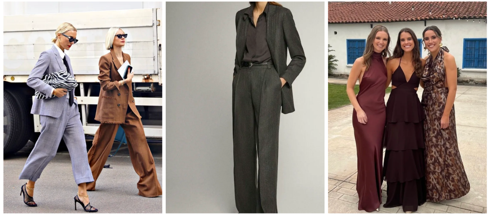 Mujeres: Vestido midi o largo sencillo, o conjunto elegante